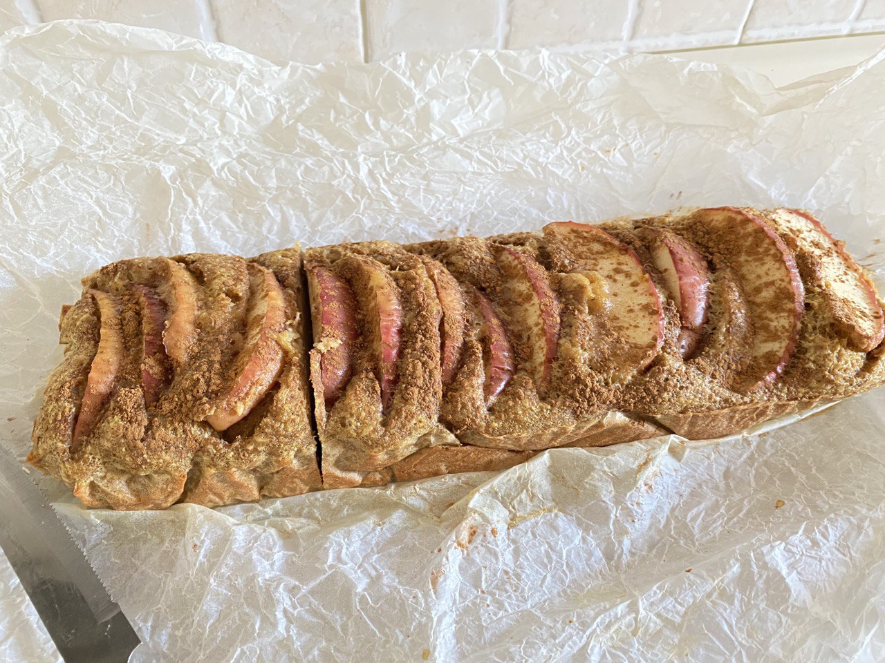 - 4Tagliare la mela a spicchi e porla sulla superficie dell’impasto con un’altra spolverata di cannella.