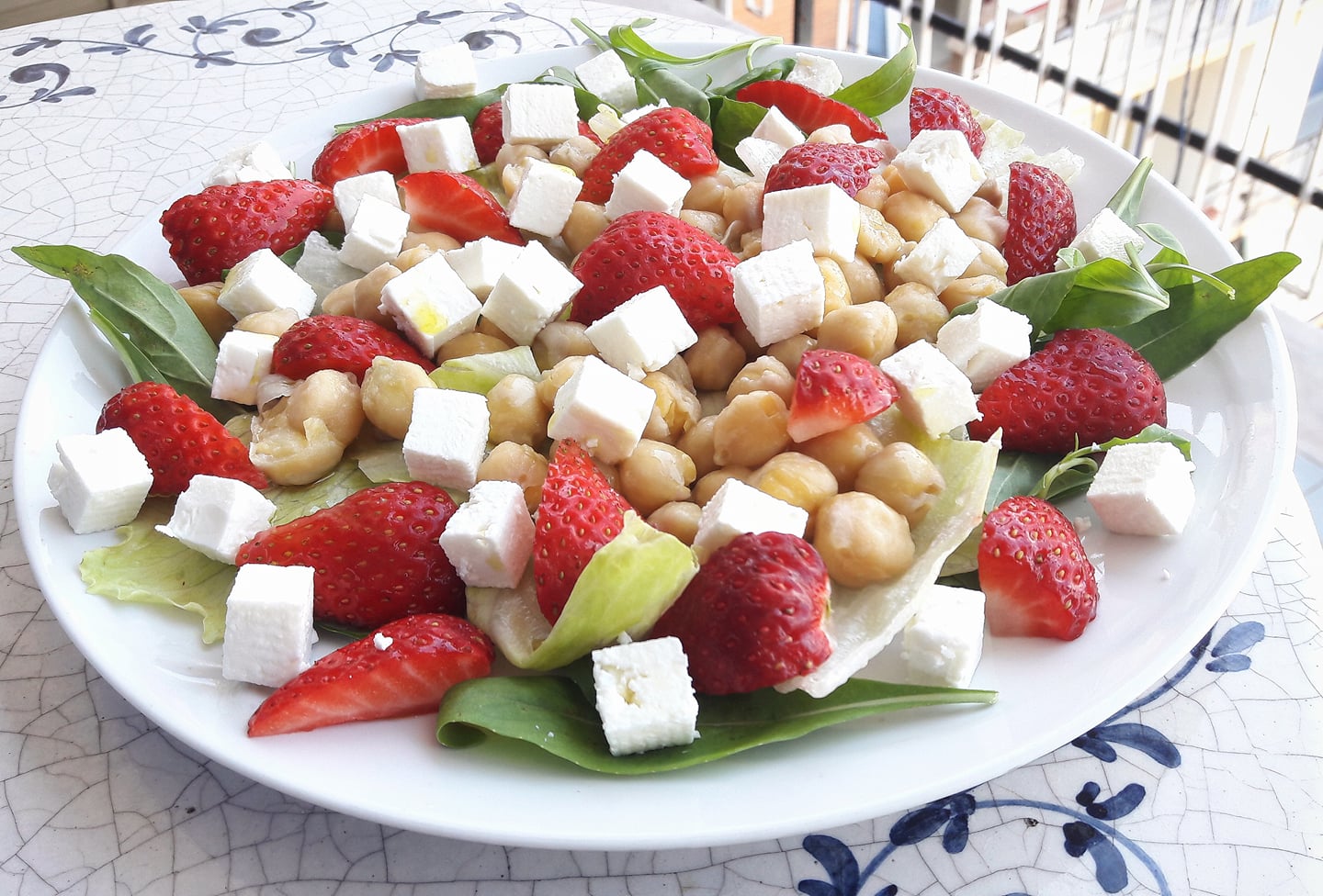Il salato della feta insieme al gusto inimitabile dei ceci e alla dolcezza delle fragole hanno reso questa insalata una delle mie preferite e più votate.