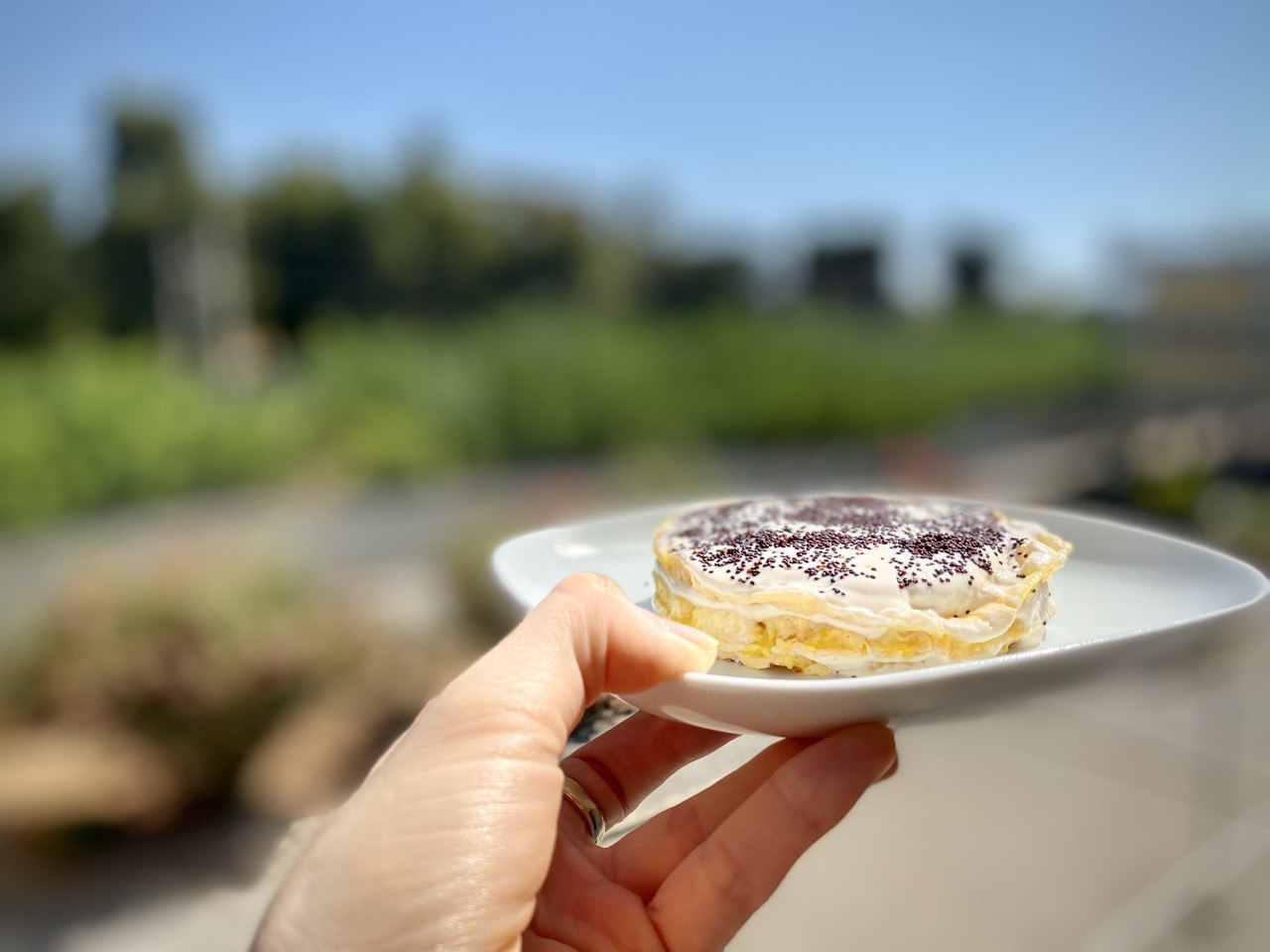 - 2Riporla su un piatto e ricoprirla con un cucchiaio di yogurt di soia.