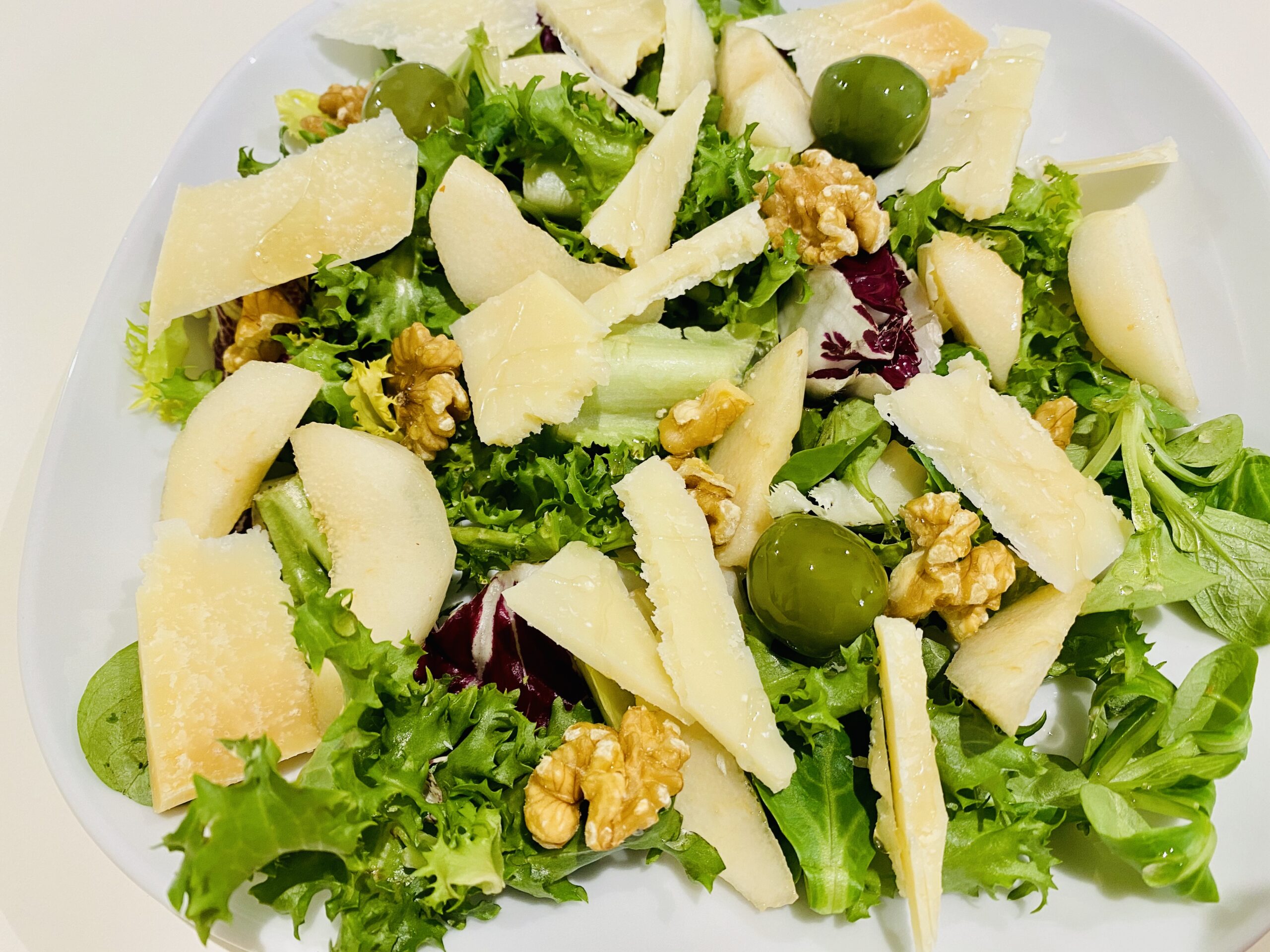 - 3Tagliare il parmigiano a scaglie e guarnire l'insalata.