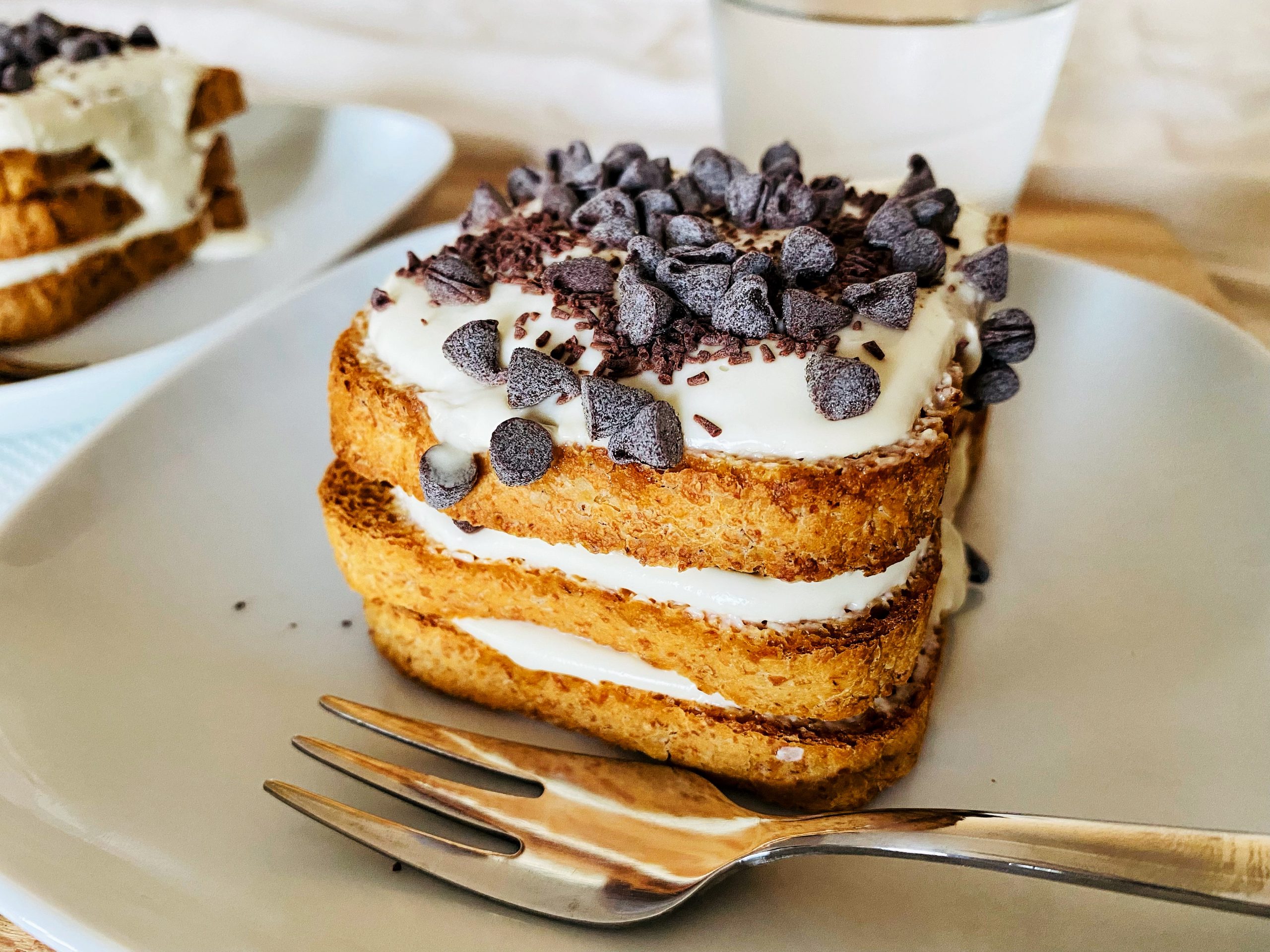 • 2Intingere entrambi i lati della fetta biscottata nel latte.