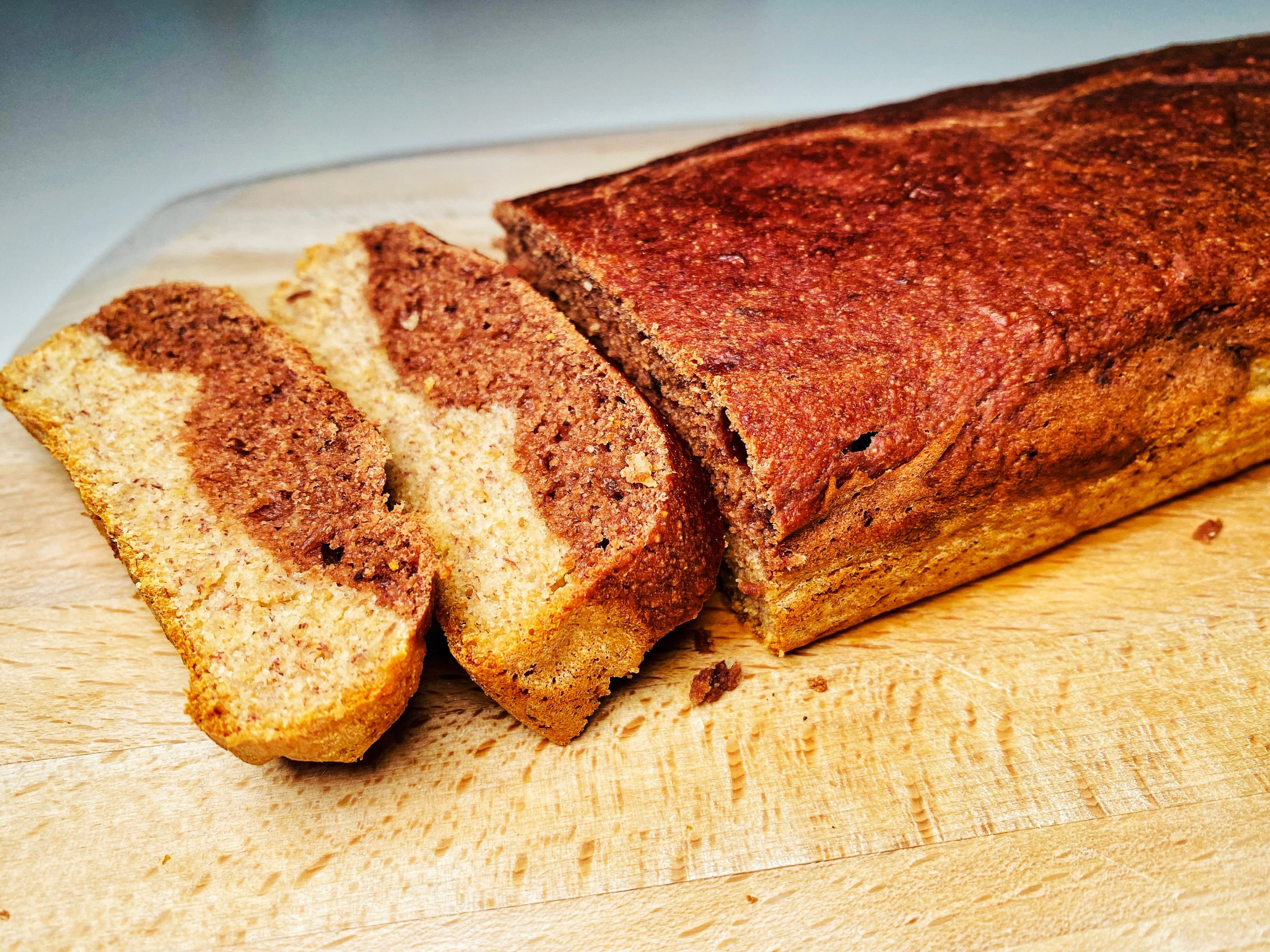 - 5Miscelare bene e versare l'impasto nello stampo da plumcake, aiutandosi con un cucchiaio affinché l'impasto scuro ricopra perfettamente quello chiaro.