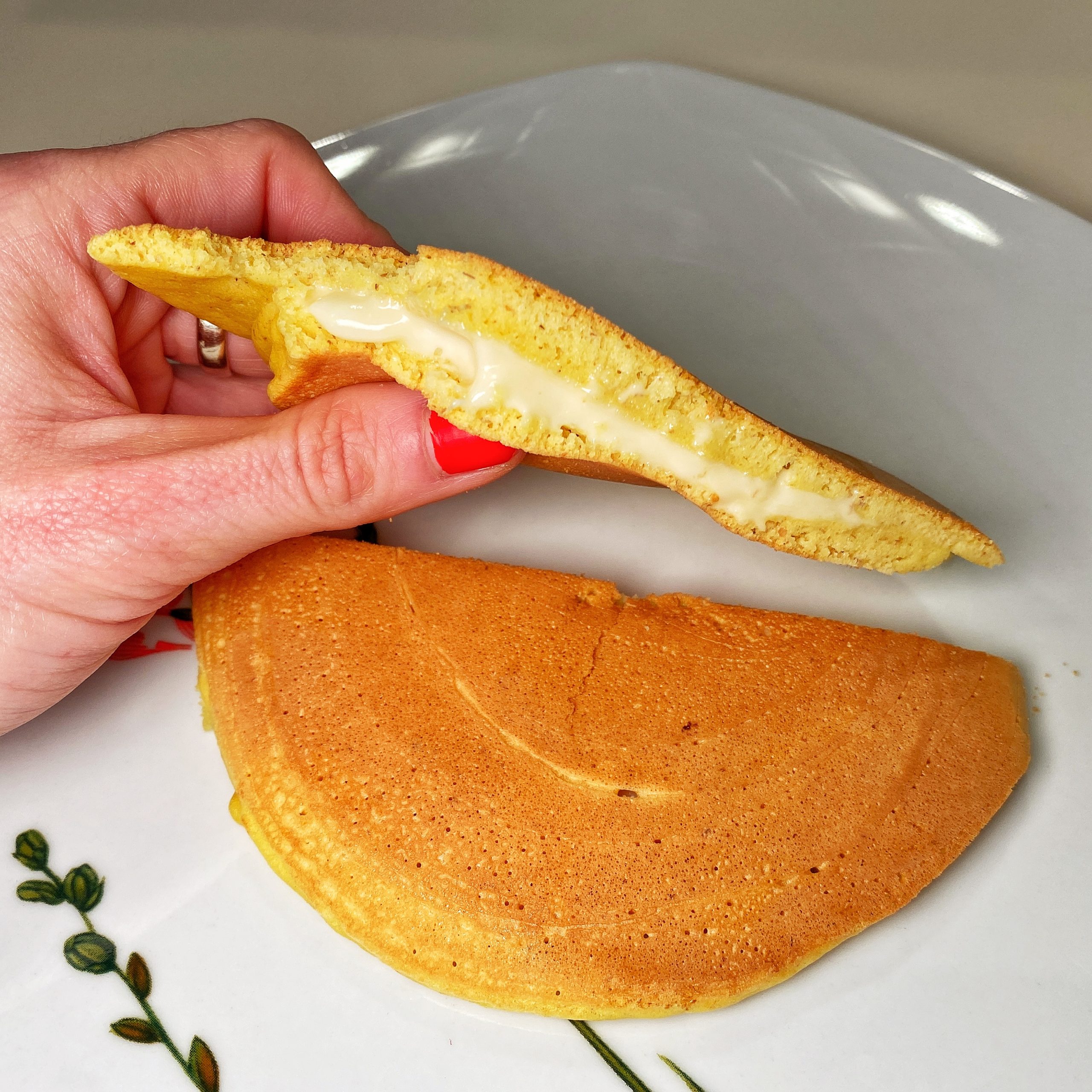 - 5Coprire nuovamente con il coperchio, far cuocere per 2 minuti e girare il pancake facendolo cuocere altri 30 secondi a fiamma più alta.