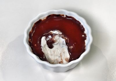 3Mescolare con una spatola e ricoprire una teglia con carta da forno.