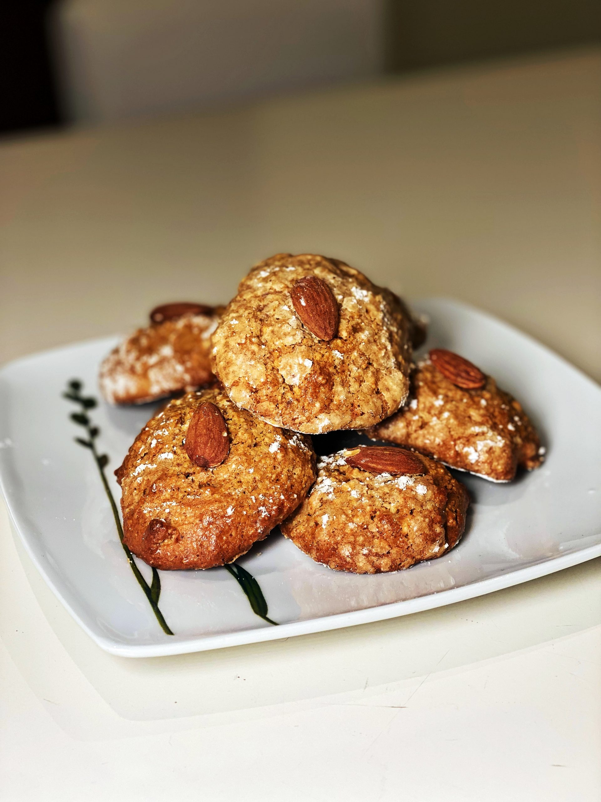 5Realizzati i biscotti, decorarli con una mandorla e farli cuocere per 13 minuti in forno ventilato a 180°C.