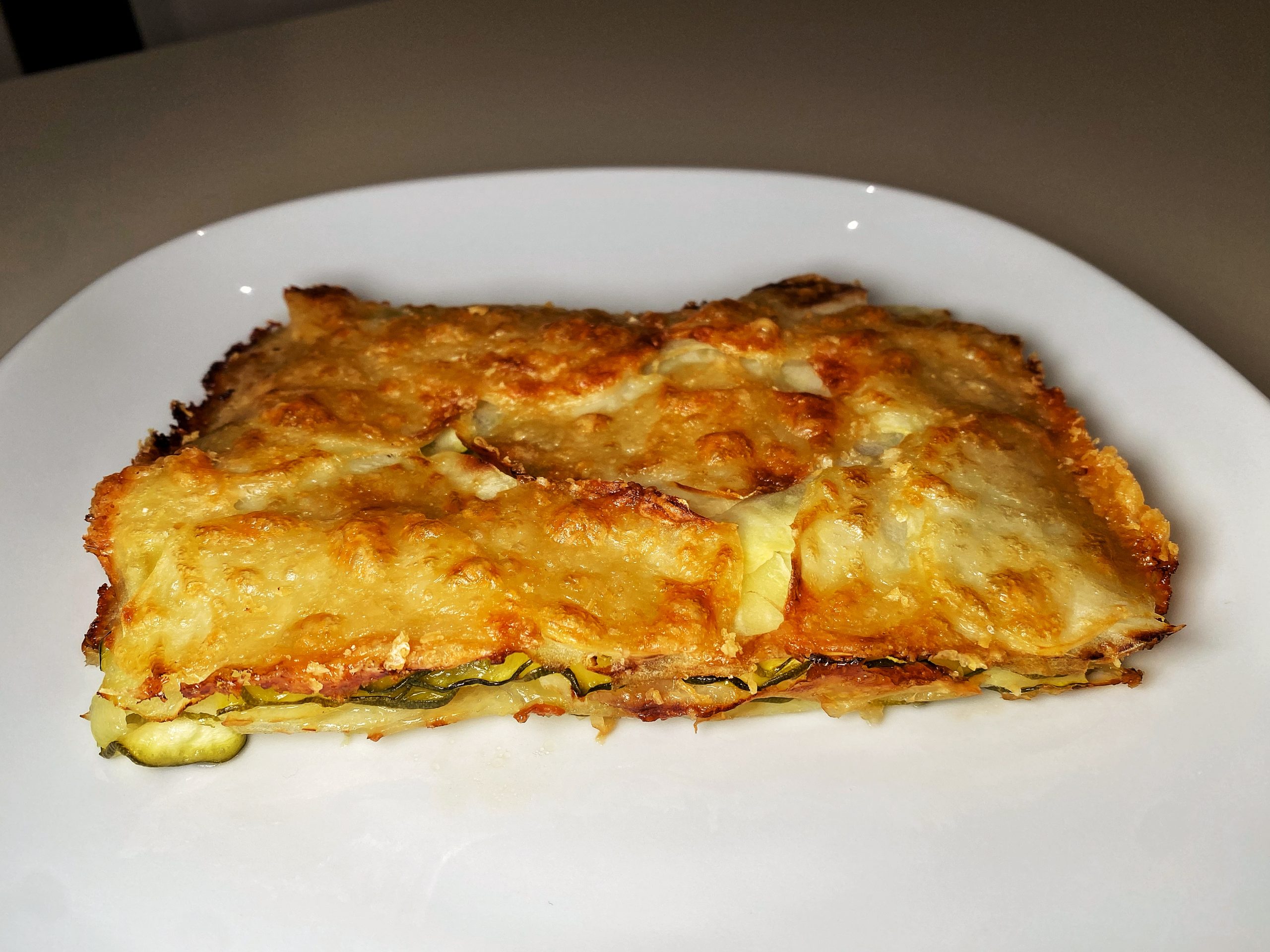 - 7In una pirofila di vetro facciamo uno strato di zucchine, poi di patate ed infine di parmigiano reggiano grattugiato.